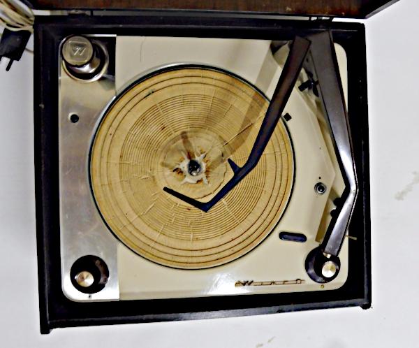 Bandeja giradiscos: Wincofon de Winco. Plato de goma, brazo pick-up liviano con púa/cápsula 33/78, 4 velocidades 16/33/45/78 RPM y adaptador para simples de 45. Podías apilar hasta 14 discos.